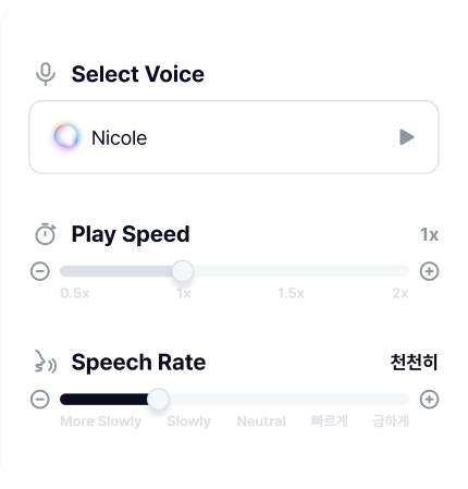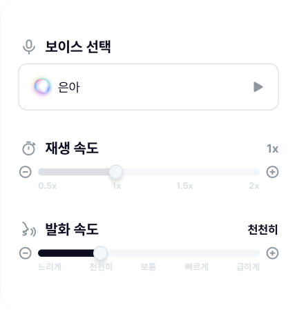 나만의 AI 음성을 직접 만들 수 있습니다. 발화 속도, 음정, 억양,
