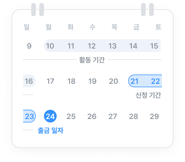 예상 수익을 기반으로 주 단위 빠른 정산 서비스를 이용해보세요.